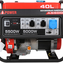 Производитель: A-ipower Модель: A5500EA - Топливо: бензин - На выходе генератора: 5 кВт, 220 B, розетки 3 шт - Работа: до 11 ч, бак 40 л Описание