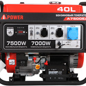 Производитель: A-iPower Модель: A7500EA - Топливо: бензин - На выходе генератора: 7 кВт, 220 B, розетки 3 шт - Работа: до 9.7 ч, бак 40 л Описание