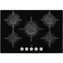 Поверхность: варочная панель • Тип поверхности: газовая • Рабочая поверхность: закаленное стекло • Число конфорок: 5 • Установка: независимая • Газовые конфорки: всего - 5 • Газ-контроль конфорок: есть • Тип управления: механическое • Переключатели: поворотные • Электроподжиг: есть, автоматический • Размеры: 745x515x45 мм • Размер ниши для встраивания: 560x490 мм • Цвет: панель - черный