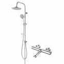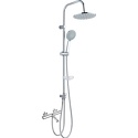 Устройство: душевая система • Смеситель: термостатический • Ручной душ (душевая лейка): размер 125 мм, настройки 5 шт • Верхний душ (тропический): размер 225 мм, настройки 1 шт • Комплектация: ручной душ, верхний душ, смеситель, стойка, шланг, крепление ручного душа, мыльница