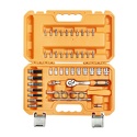 Набор: 43 шт • Головки: 6-ти гранные головки • Ключей-трещоток: 1 шт • Хранение: пластиковый кейс
