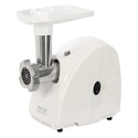 Номинальная мощность: 230 Вт • Производительность: 1.7 кг/мин • Насадки-решетки: Есть, 2 штуки • Насадки-терки: Есть • Насадки для шинковки: Есть • Прочие насадки: для приготовления колбас • Лоток для подачи продуктов: есть, пластик • Цвет корпуса: белый • Материал корпуса: пластик • Максимальная мощность: 1500 Вт