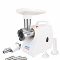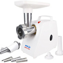 Номинальная мощность: 230 Вт • Реверс: есть • Производительность: 1.6 кг/мин • Вес: 3.3 кг • Насадки-решетки: Есть, 3 штуки • Прочие насадки: для приготовления кеббе, для приготовления колбас • Соковыжималка: есть • Отделение для хранения насадок: есть • Резиновые ножки: есть • Лоток для подачи продуктов: есть, пластик • Цвет корпуса: белый • Материал корпуса: пластик • Отделение для хранения кабеля: есть