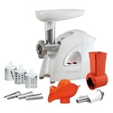 Куплена за 4К в начале января 2017. Впечатлило количество насадок, хотя все они на мой вкус не нужны, теперь будут валятся на балконе. Сама мясорубка отвращение внешним видом не вызывает - компактная, удобная, устойчивая. Сначала помыл все части, потом пропустил через мясорубку пару луковиц и картофелин. Как и ожидал - первые были в масле :( или какой-то технической смазке. Теперь по основной функции - хреначит мясо на ура, жена правда очень аккуратно его от жил очищает, прежде чем закидывать. Котлетки вкусные. В общем пока приличная мясорубка от российского производителя, с учетом того, что аналоги от известных импортных контор стоят в районе 8-10К - хорошая покупка.