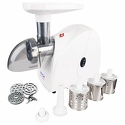 Номинальная мощность: 230 Вт • Реверс: есть • Производительность: 1.7 кг/мин • Насадки-решетки: Есть, 2 штуки • Насадки для шинковки: Есть • Прочие насадки: для приготовления колбас, для формовки теста • Соковыжималка: есть • Лоток для подачи продуктов: есть, пластик • Цвет корпуса: белый • Материал корпуса: пластик • Максимальная мощность: 1500 Вт