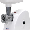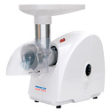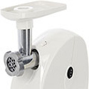 Номинальная мощность: 230 Вт • Реверс: есть • Производительность: 1.7 кг/мин • Вес: 4.35 кг • Насадки-решетки: Есть, 2 штуки (7 мм, 5 мм) • Насадки-терки: Есть, 2 • Прочие насадки: для приготовления кеббе, для приготовления колбас • Отделение для хранения насадок: есть • Резиновые ножки: есть • Лоток для подачи продуктов: есть, пластик • Цвет корпуса: белый • Материал корпуса: пластик