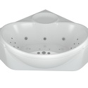 Материал: акрил • Расположение: отдельно стоящая, угловая конструкция • Форма: четверть круга • Объем: 310 л • Количество мест: двухместная • Размеры (ДxШxВ): 150x150x46 см