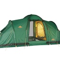Назначение: кемпинговая • Количество мест: 6 • Форма: полубочка • Материал тента: полиэстер • Вес: 13.5 кг • Каркас: внешний • Количество входов: 2 • Количество комнат: 2 • Внутренняя палатка: есть • Навес: нет • Вентиляционные окна: 2 окна • Окна: нет • Материал внутренней палатки: полиэстер • Материал дна: полиэстер • Материал дуг: стеклопластик • Водостойкость тента: 4000 мм вод. ст.