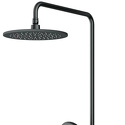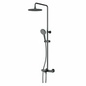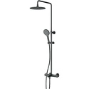 Устройство: душевая система • Смеситель: термостатический • Ручной душ (душевая лейка): размер 120 мм, настройки 3 шт • Верхний душ (тропический): размер 220 мм, настройки 1 шт • Комплектация: ручной душ, верхний душ, смеситель, стойка, шланг, крепление ручного душа