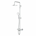 Устройство: душевая система • Смеситель: термостатический, от стены 176 мм • Ручной душ (душевая лейка): размер 120 мм, настройки 3 шт • Верхний душ (тропический): размер 228 мм, настройки 1 шт • Комплектация: ручной душ, верхний душ, смеситель, стойка, шланг, крепление ручного душа