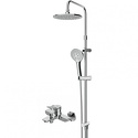 Устройство: душевая система • Смеситель: джойстик • Ручная лейка: размер 110 мм, настройки 3 шт • Верхний душ: размер 220 мм, настройки 1 шт • Комплектация: ручной душ, смеситель, стойка, шланг, крепление ручного душа