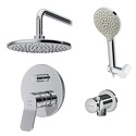 Комплектацияручной душ (душевая лейка), верхний душ (тропический), смеситель, душевой шланг, крепление ручного душа, настенный кронштейн