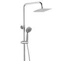 Устройство: душевая система • Смеситель: джойстик • Ручной душ (душевая лейка): размер 100 мм, настройки 3 шт • Верхний душ (тропический): размер 200 мм, настройки 1 шт • Комплектация: ручной душ, верхний душ, смеситель, стойка, шланг, крепление ручного душа