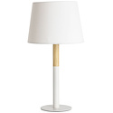 Настольная лампа декоративная стиля модерн для гостиной, кабинета или спальни имеет размеры 230x435 мм. Арматура светильника окрашена в белый и коричневый цвет. Лампы в комплекте - отсутствуют. В светильнике применяются лампы накаливания или светодиодная LED-лампа. Цвет плафонов - белый, с матовой поверхностью. Материал плафонов - текстиль. Класс электробезопасности - II, степень пылевлагозащиты (IP) - 20. Максимальная мощность лампы (Вт) - 60. Светильник размещается на столе.
