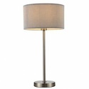 Настольная лампа декоративная стиля модерн для гостиной, кабинета или спальни имеет размеры 290x560 мм. Арматура светильника окрашена в серебрянный цвет. Лампы в комплекте - отсутствуют. В светильнике применяются лампы накаливания или светодиодная LED-лампа. Цвет плафонов - серый, с матовой поверхностью. Материал плафонов - текстиль. Класс электробезопасности - II, степень пылевлагозащиты (IP) - 20. Максимальная мощность лампы (Вт) - 40. Светильник размещается на столе.