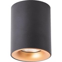 Накладной светильник стиля минимализм для гостиной, кабинета, кладовой,коридора, прихожей или спальни,туалета имеет размеры 80x100 мм. Арматура светильника окрашена в черный цвет. Лампы в комплекте - отсутствуют. В светильнике применяются галогеновая лампа или светодиодная LED-лампа. Цвет плафонов - черный, с матовой поверхностью. Материал плафонов - дюралюминий. Класс электробезопасности - I, степень пылевлагозащиты (IP) - 20. Максимальная мощность лампы (Вт) - 35.