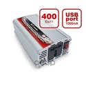 Напряжение на входе: 12 В • Мощность: пиковая 400 Вт • Подключение инвертора: в прикуриватель/крокодилы • Размеры: 122x89x47 мм, вес 0.75 кг