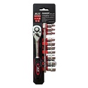 КомплектацияГоловка торцевая 6-гранная 1/4"DR 4, 5, 6, 7, 8, 9, 10, 11, 12, 13 мм - 10 штТрещоточная рукоятка 1/4"DR с пластиковой ручкой, 72 зубца - 1 штУдлинитель 1/4"DR 100 мм - 1шт