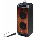 Режим звучания: стерео • Суммарная мощность колонок: 70 Вт • Количество колонок: 2 • Эквалайзер: есть • Радиотюнер: есть • Диапазоны: FM • Количество радиостанций в памяти: 30 • USB-хост: есть • Bluetooth-адаптер: есть, Bluetooth 2.1 + EDR • Аудиовходы: линейный mini-jack, микрофон x 2 • Питание от батарей: есть • Питание от сети: есть • Поддерживаемый стандарт батарей: встроенный аккумулятор • Дисплей: есть