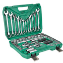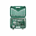 Комплектация- 1/2" Головки торцевые: 10, 11, 12, 13, 14, 15, 16, 17, 18, 19, 20, 21, 22, 23, 24, 27, 30, 32 мм- 1/2" Головки торцевые свечные: 16, 21 мм- 1/2" Удлинитель 125, 250 мм- 1/2" Ключ трещоточный- 1/2" Карданный шарнир- 1/4" Головки торцевые: 4, 4.5, 5, 5.5, 6, 7, 8, 9, 10, 11, 12, 13, 14 мм- 1/4" Удлинитель 50, 100 мм- 1/4" Отверточная рукоятка- 1/4" Вороток удлинитель- 1/4" Ключ трещоточный- 1/4" Карданный шарнир- 1/4" Удлинитель- Комплект комбинированных ключей: 8, 9, 10, 11, 12, 13, 14, 15, 16, 17, 18, 19 мм- Комплект шестигранных ключей: 1.5, 2, 2.5 мм- Адаптер- Кейс для хранения
