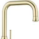 Назначение: кухонный • Конструкция: однорычажный • Монтаж: горизонтальный • Клапан: керамический • Материал: латунь, покрытие - латунь • Подводка: гибкая • Монтажные отверстия: 1 отверстие • Форма излива: традиционная • Душевая лейка в комплекте: нет • Аэратор: есть