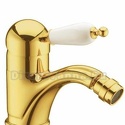 Назначение: для биде • Конструкция: однорычажный • Монтаж: горизонтальный • Материал: покрытие - золото • Монтажные отверстия: 1 отверстие • Форма излива: традиционная • Душевая лейка в комплекте: нет • Аэратор: есть • Донный клапан в комплекте: есть