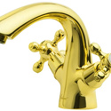 Назначение: для умывальника • Конструкция: двухрычажный • Монтаж: горизонтальный • Материал: покрытие - золото • Монтажные отверстия: 1 отверстие • Форма излива: традиционная • Душевая лейка в комплекте: нет • Донный клапан в комплекте: есть