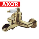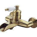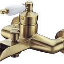Назначение: ванна+душ • Конструкция: однорычажный • Монтаж: вертикальный • Материал: покрытие - бронза • Подводка: жесткая • Монтажные отверстия: 2 отверстия • Форма излива: каскадная • Душевая лейка в комплекте: нет