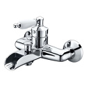 Назначение: ванна+душ • Конструкция: однорычажный • Монтаж: вертикальный • Материал: покрытие - хром • Подводка: жесткая • Монтажные отверстия: 2 отверстия • Форма излива: каскадная • Душевая лейка в комплекте: нет
