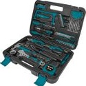 КомплектацияГоловки 1/4" (9 шт)Нож (1 шт)Отвертка часовая (6 шт)Отвертка (2 шт)Держатель для бит 170 мм с трещеткой (1 шт)Ножовка по металлу (1 шт)Отвертка-тестер (1 шт)Биты (10 шт)Плоскогубцы (1 шт)Длинногубцы 160мм (1 шт)Ключ разводной (1 шт)Клещи переставные (1 шт)Рулетка измерительная 3м (1 шт)Молоток (1 шт)Фонарик (1 шт)Изолента (1 шт)Кейс (1 шт)
