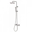 Устройство: душевая система • Смеситель: термостатический • Ручная лейка: настройки 1 шт • Верхний душ: размер 230 мм, настройки 1 шт • Комплектация: ручной душ, смеситель, стойка, шланг, крепление ручного душа