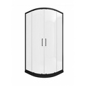 Форма четверть круга. Раздвижные двери. Профиль из нержавеющей стали с покрытием черного цвета. Ширина входа 78 см.