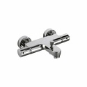 Назначение: ванна+душ • Конструкция: двухрычажный • Монтаж: вертикальный • Материал: латунь, покрытие - хром • Подводка: жесткая • Монтажные отверстия: 2 отверстия • Форма излива: традиционная • Термостат: есть • Душевая лейка в комплекте: нет • Донный клапан в комплекте: есть