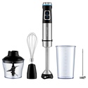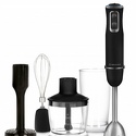 Тип: погружной (ручной) блендер • Мощность: 800 Вт • Скорости: плавная регулировка, импульсный • Насадки: ножка, венчики, нож для измельчителя