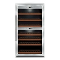 Тип: двухкамерный винный шкаф • Расположение: отдельностоящий • Количество компрессоров: 1 • Цвет: нерж.сталь • Размеры (ШxВxГ): 595x1035x675 мм • Количество дверей: однодверный • Винный шкаф: 66 бут. • Управление: цифровой дисплей, электронное • Освещение в холодильной камере: есть • Материал полок: дерево