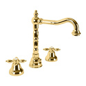 Назначение: для умывальника • Конструкция: однорычажный • Монтаж: вертикальный • Клапан: керамический • Материал: латунь, покрытие - золото • Подводка: жесткая • Монтажные отверстия: 2 отверстия • Форма излива: традиционная • Душевая лейка в комплекте: нет • Аэратор: есть