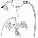 Назначение: ванна+душ • Конструкция: двухрычажный • Монтаж: вертикальный • Материал: латунь, покрытие - хром • Подводка: жесткая • Монтажные отверстия: 2 отверстия • Форма излива: традиционная • Душевая лейка в комплекте: есть • Держатель для душевой лейки: на смесителе
