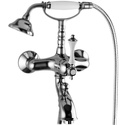 Назначение: ванна+душ • Конструкция: однорычажный • Монтаж: вертикальный • Материал: покрытие - золото • Подводка: жесткая • Монтажные отверстия: 2 отверстия • Форма излива: традиционная • Душевая лейка в комплекте: есть • Держатель для душевой лейки: на смесителе • Донный клапан в комплекте: есть