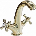 Назначение: для умывальника • Конструкция: двухрычажный • Монтаж: горизонтальный • Материал: латунь, покрытие - золото • Подводка: гибкая • Монтажные отверстия: 1 отверстие • Форма излива: традиционная • Душевая лейка в комплекте: нет • Аэратор: есть • Донный клапан в комплекте: есть