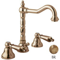 Назначение: для умывальника • Конструкция: двухрычажный • Монтаж: вертикальный • Клапан: керамический • Материал: латунь, покрытие - бронза • Подводка: жесткая • Монтажные отверстия: 3 отверстия • Форма излива: традиционная • Душевая лейка в комплекте: нет • Аэратор: есть • Донный клапан в комплекте: есть