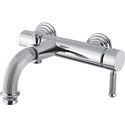 Назначение: ванна+душ • Конструкция: однорычажный • Монтаж: вертикальный • Клапан: керамический • Материал: латунь, покрытие - хром • Подводка: жесткая • Монтажные отверстия: 2 отверстия • Форма излива: традиционная • Душевая лейка в комплекте: нет • Аэратор: есть • Эксцентрики в комплекте: есть