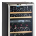 Тип: однокамерный винный шкаф • Расположение: отдельностоящий • Количество компрессоров: 1 • Цвет: нерж.сталь, чёрный • Размеры (ШxВxГ): 493x825x595 мм • Количество дверей: однодверный • Винный шкаф: 40 бут. • Управление: цифровой дисплей, электронное • Освещение в холодильной камере: есть • Материал полок: дерево, оцинкованный металл • Регулируемые ножки: есть • Годовой расход энергии: 492.75 кВтч