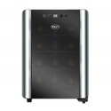 Тип: однокамерный винный шкаф • Расположение: отдельностоящий • Цвет: чёрный • Размеры (ШxВxГ): 340x475x500 мм • Количество дверей: однодверный • Общий объем: 35 л • Объем холодильной камеры: 35 л • Винный шкаф: 12 бут. • Управление: цифровой дисплей, электронное • Освещение в холодильной камере: есть • Холодильная камера: полка для бутылок x 4 • Материал полок: металл-хром • Класс энергопотребления: A