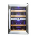 Тип: двухкамерный винный шкаф • Расположение: отдельностоящий • Цвет: чёрный • Размеры (ШxВxГ): 340x534x510 мм • Количество дверей: однодверный • Общий объем: 33 л • Объем холодильной камеры: 33 л • Винный шкаф: 12 бут. • Управление: цифровой дисплей, электронное • Освещение в холодильной камере: есть • Холодильная камера: полка для бутылок x 4 • Материал полок: дерево • Регулируемые ножки: есть