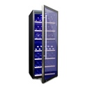 Тип: двухкамерный винный шкаф • Расположение: отдельностоящий • Количество компрессоров: 1 • Цвет: чёрный • Размеры (ШxВxГ): 595x1590x635 мм • Количество дверей: однодверный • Общий объем: 307 л • Объем холодильной камеры: 307 л • Винный шкаф: 126 бут. • Управление: цифровой дисплей, электронное • Освещение в холодильной камере: есть • Холодильная камера: полка для бутылок x 7 • Материал полок: дерево