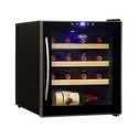 Тип: однокамерный винный шкаф • Расположение: отдельностоящий • Количество компрессоров: 1 • Цвет: чёрный • Размеры (ШxВxГ): 430x500x510 мм • Количество дверей: однодверный • Винный шкаф: 16 бут. • Разморозка: автоматическая • Управление: цифровой дисплей, электронное • Освещение в холодильной камере: есть • Материал полок: дерево • Максимальный уровень шума: 21 дБ