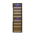Тип: двухкамерный винный шкаф • Расположение: отдельностоящий • Количество компрессоров: 1 • Цвет: чёрный • Размеры (ШxВxГ): 595x1860x700 мм • Количество дверей: однодверный • Общий объем: 455 л • Объем холодильной камеры: 455 л • Винный шкаф: 180 бут. • Управление: цифровой дисплей, электронное • Освещение в холодильной камере: есть • Холодильная камера: полка для бутылок x 8 • Материал полок: дерево
