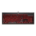 Состав: клавиатура • Назначение: настольный компьютер • Подключение: проводное (USB) • Конструкция: игровая • Цвет: черный • Дополнительные клавиши: 9 (воспроизведение/пауза, громкость, отключение звука, предыдущий трек, следующий трек) • Подставка под запястья: есть, отсоединяемая • Встроенная подсветка: есть (красный) • Защита клавиатуры: от воды, от пыли • Кабели: клавиатура -