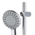 Устройство: душевой набор • Ручная лейка: размер 120 мм, настройки 5 шт • Комплектация: ручной душ, стойка, шланг, крепление ручного душа, мыльница