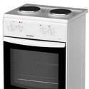 Тип конфорок: электрические • Рабочая поверхность: эмаль • Тип духовки: электрическая • Размеры (ШxВxГ): 500x850x400 мм • Цвет: белый, черный • Конфигурация электрических конфорок: 2 x 145 мм - 1000 g • Электрические конфорки: всего - 2 • Объем духовки: 45 л • Очистка духовки: традиционная • Подсветка: есть • Количество стекол дверцы духовки: 2 • Количество режимов работы духовки: 4 • Тип управления: механическое
